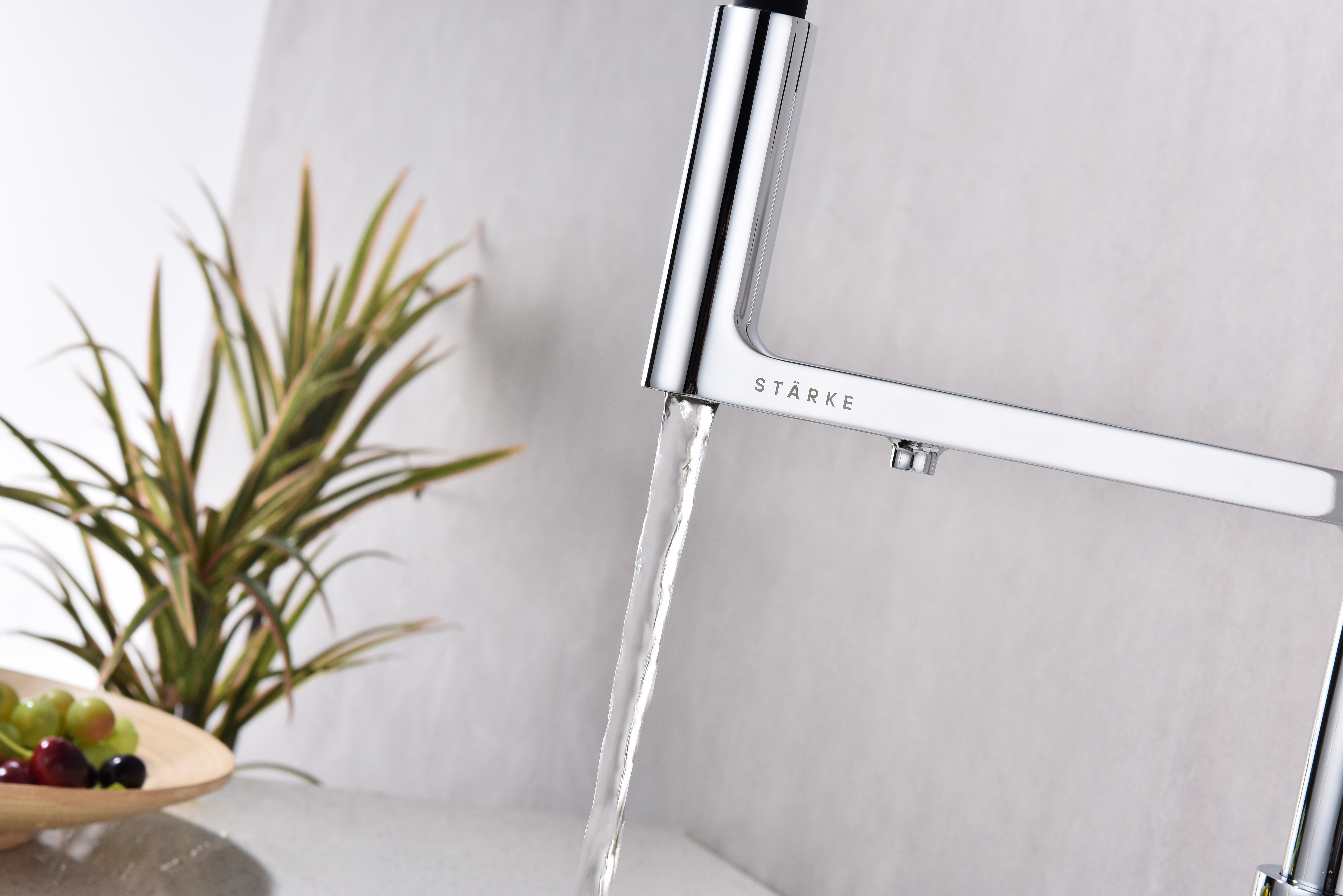 Многофункциональный смеситель для кухни TORNADO – модель премиальной серии «Starke» кухонной сантехники бренда Paulmark изготовлен из высококачественной латуни, которая отвечает высочайшим европейским стандартам качества, не содержит свинца, не разрушается со временем и безопасна для здоровья.