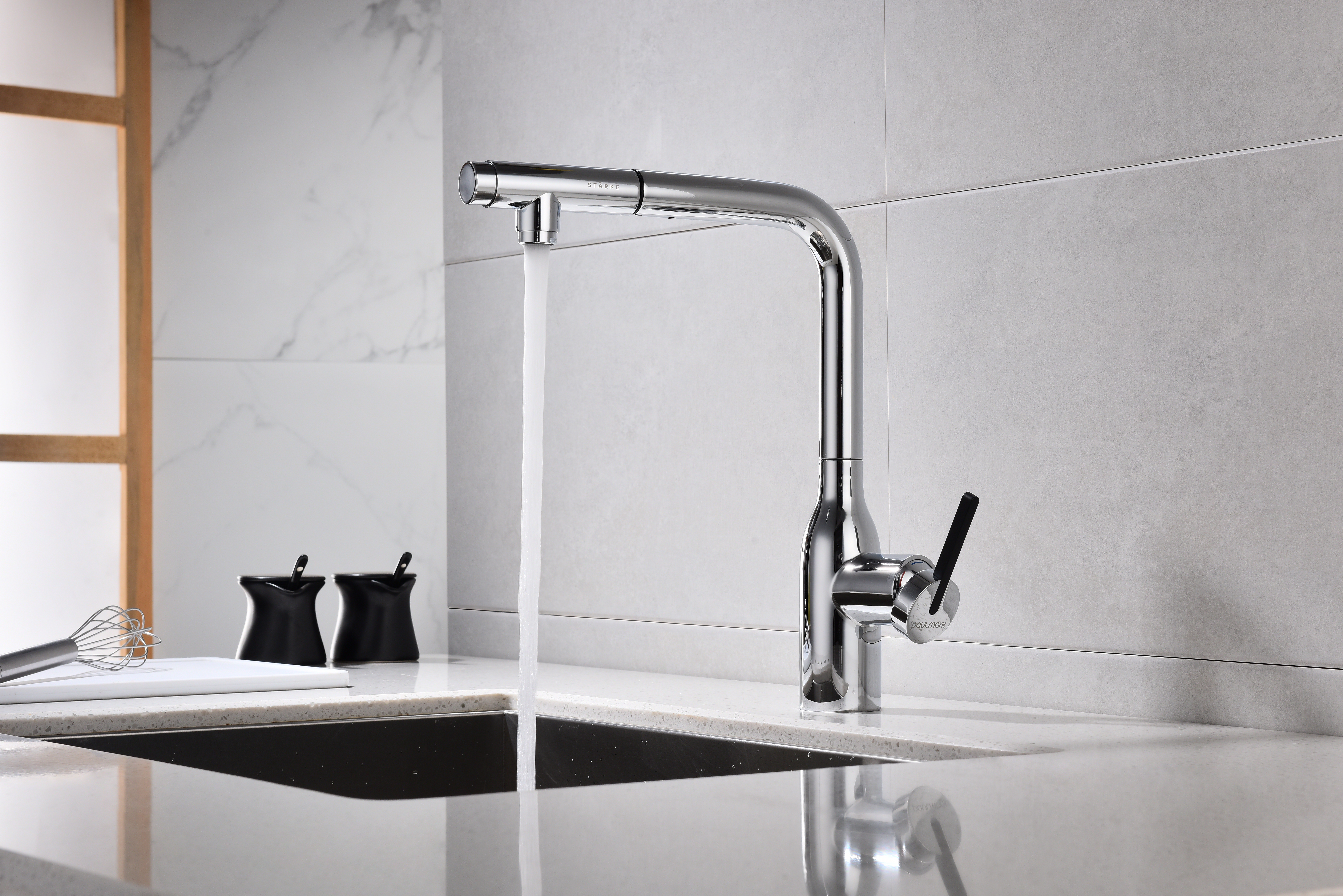 Смеситель VIPER имеет отдельный канал для питьевой воды. Переключение режимов осуществляется с помощью удобной и эргономично расположенной кнопки. Благодаря такому функционалу, потоки воды не смешиваются, а переключение осуществляется максимально комфортно.